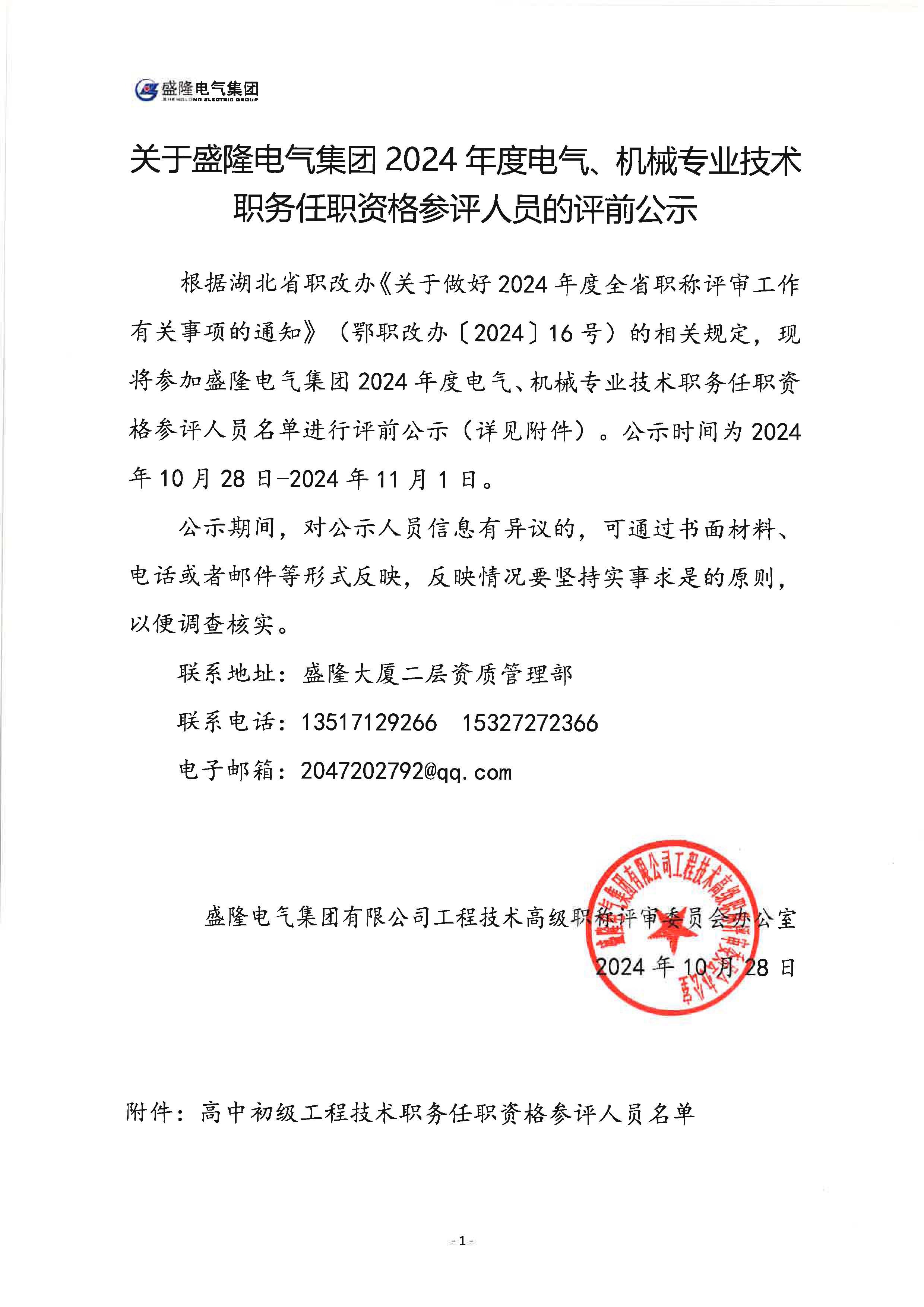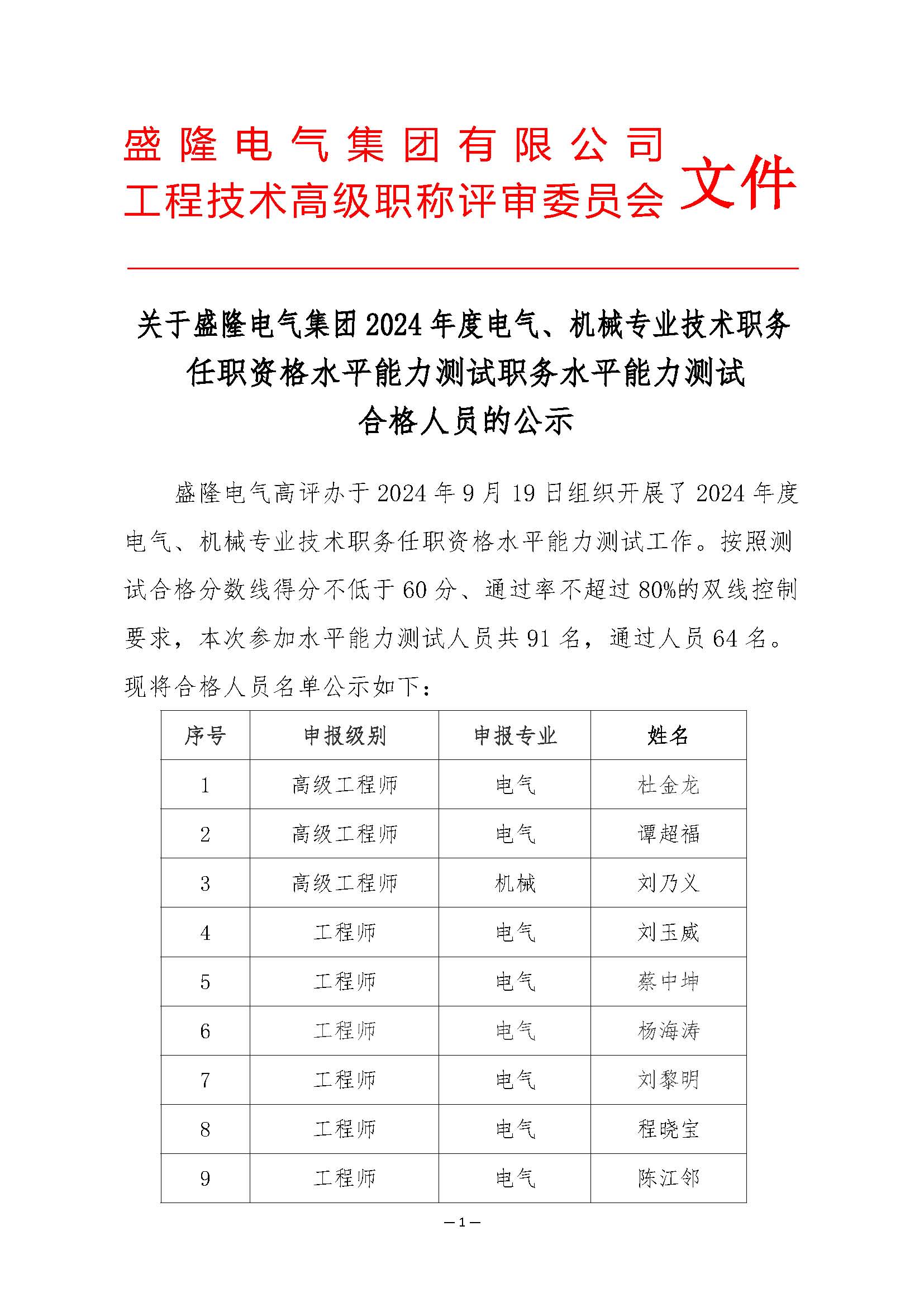 關(guān)于盛隆電氣集團2024年度電氣、機械專業(yè)技...